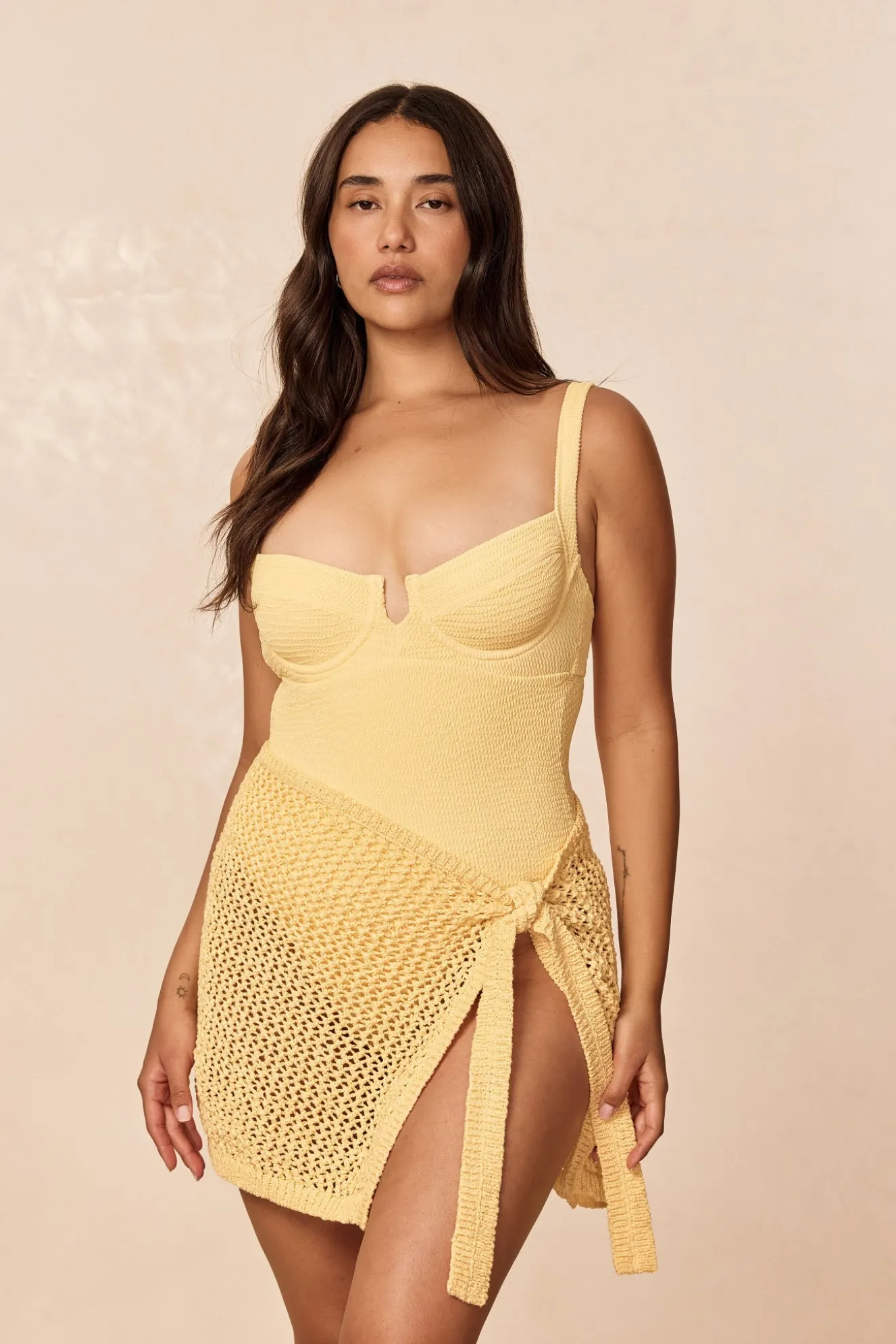 If you match any of our beachwear with this style please keep in mind that the fabric can offer a slightly different shade in our swimwear and beachwear, therefore an exact color match cannot be guaranteed.