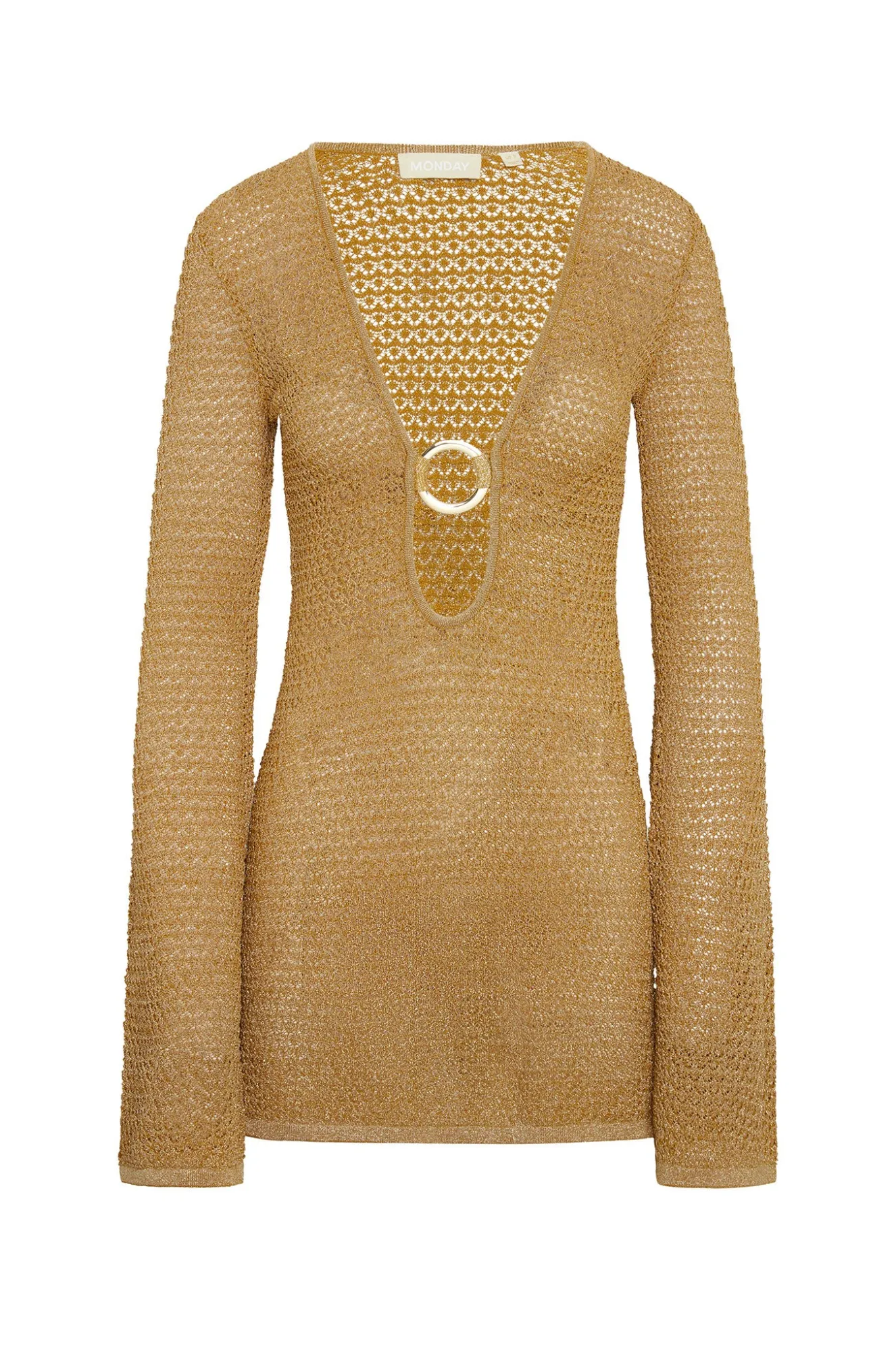 Our best selling dress now comes in a shorter option. This Montego Mini Dress is made in our lace crochet fabric with a plunging neckline, gold ring detail and a flattering silhouette that makes it the perfect dress.