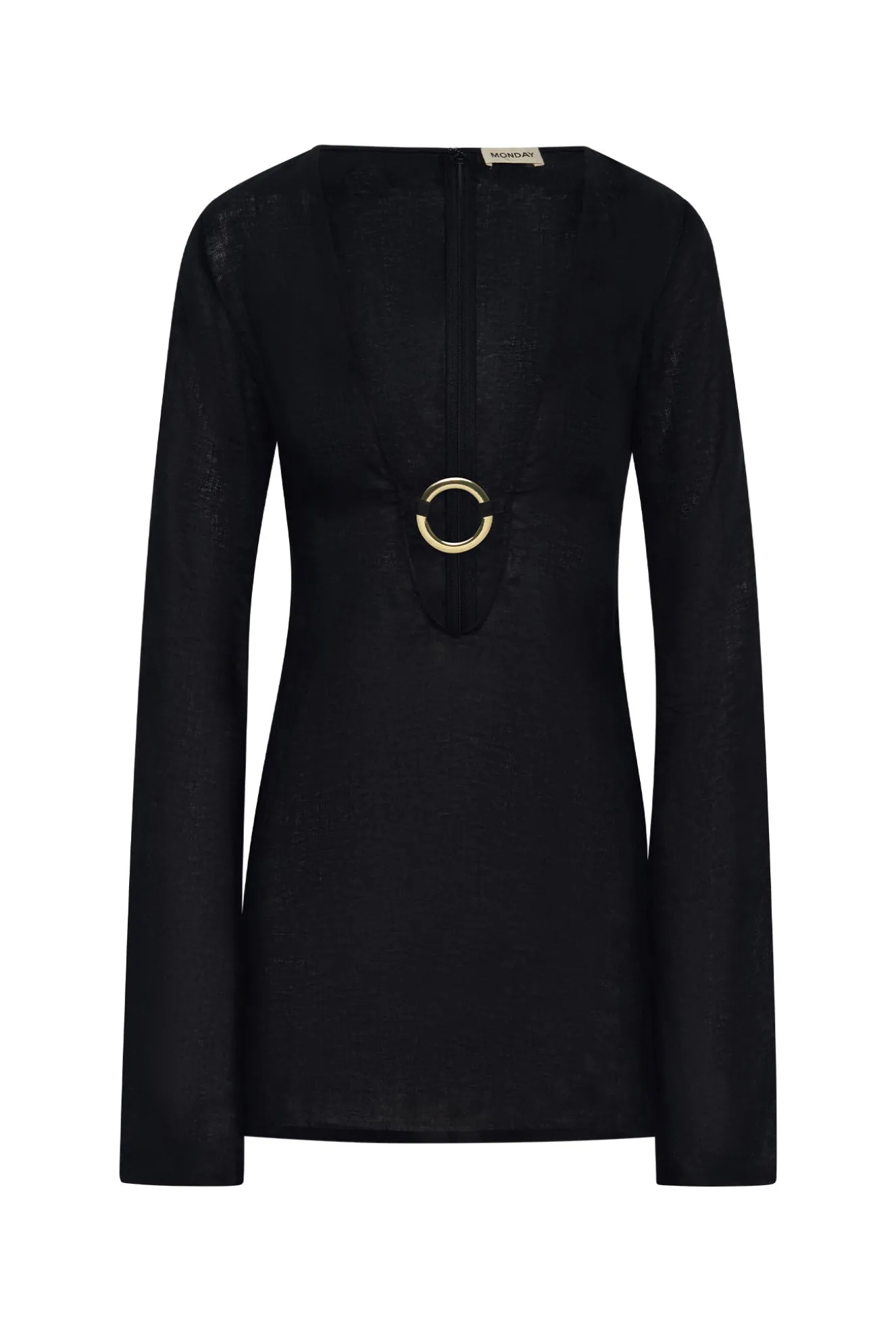 Our best selling dress now comes in a shorter option. This Montego Mini Dress is made in our newest linen fabric with a plunging neckline, gold ring detail and a flattering silhouette that makes it the perfect dress.