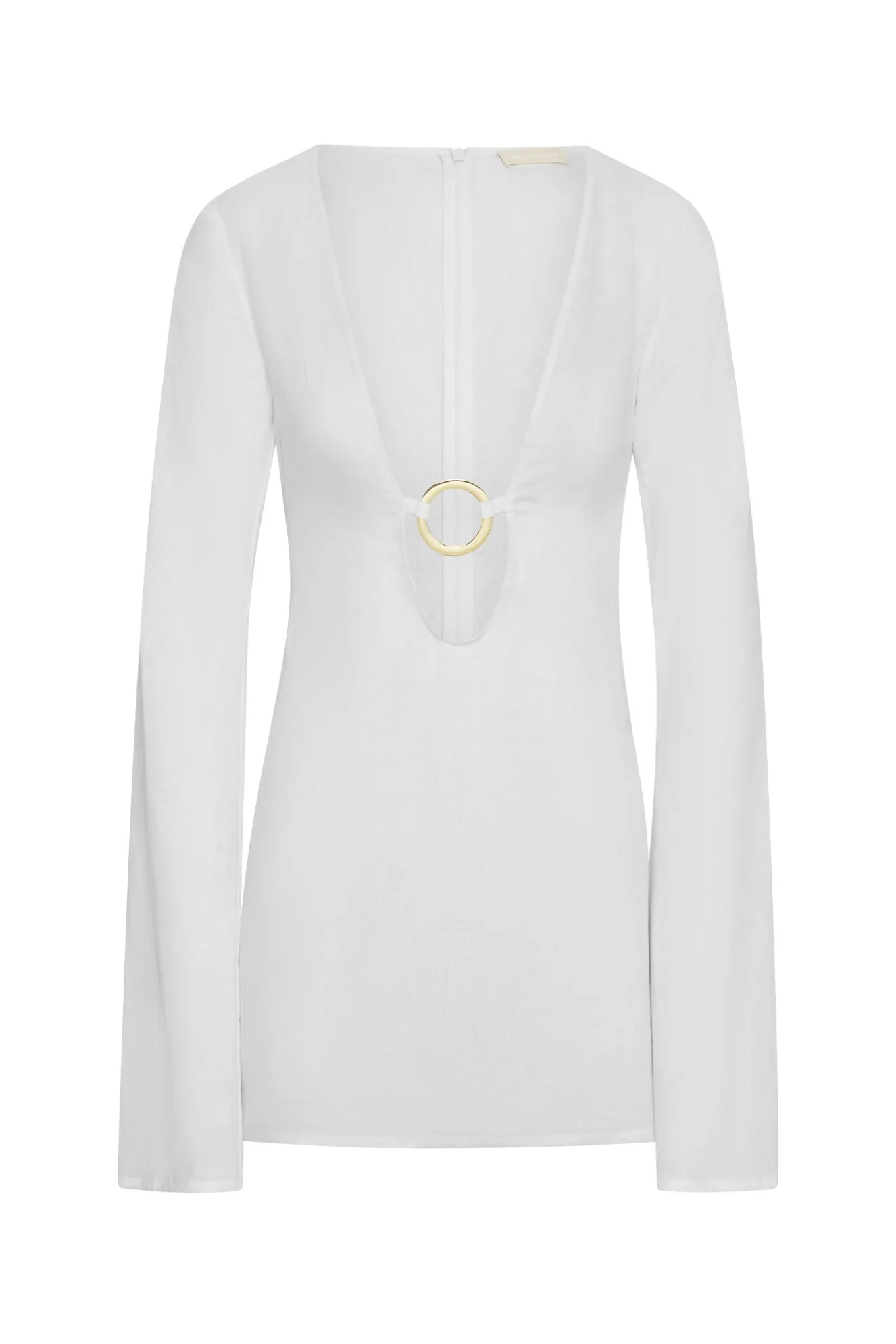 Plunging neckline w/ center front gold ring detail